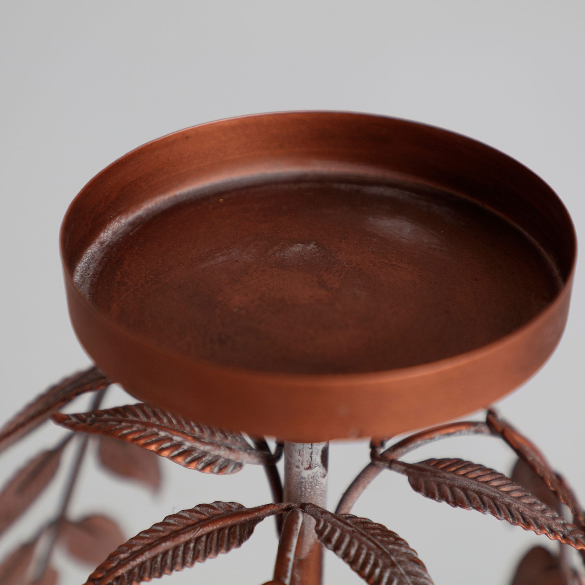 Candelabro Redondo Palmera Lucerna De Estilo Art Deco, Fabricado En Hierro En Color Cobre. Dimensiones: 15 x 15 x 36 cm