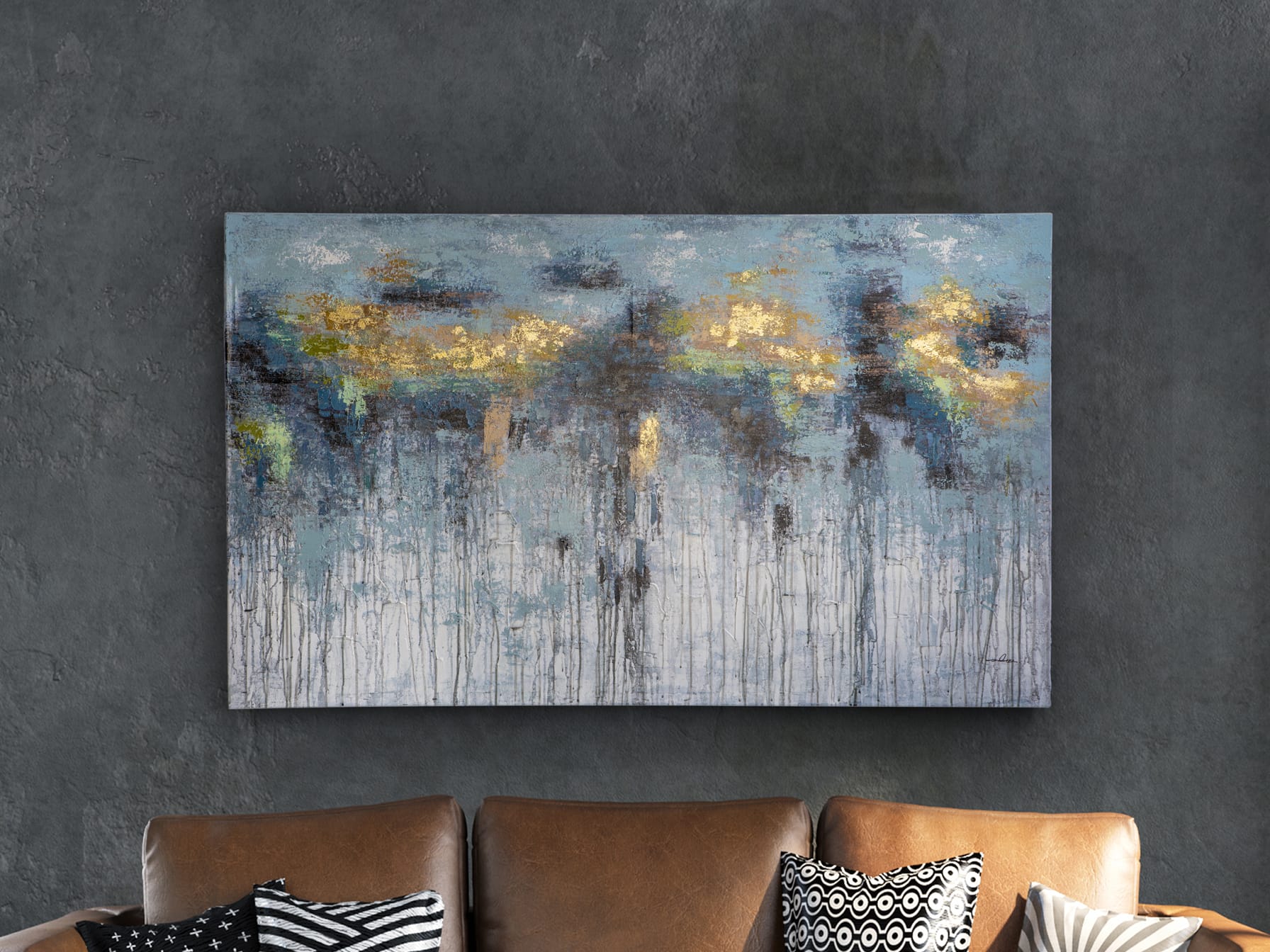 ·AQUAS· Pintura realizada en acrílico con detalles en oro, montado sobre bastidor.
