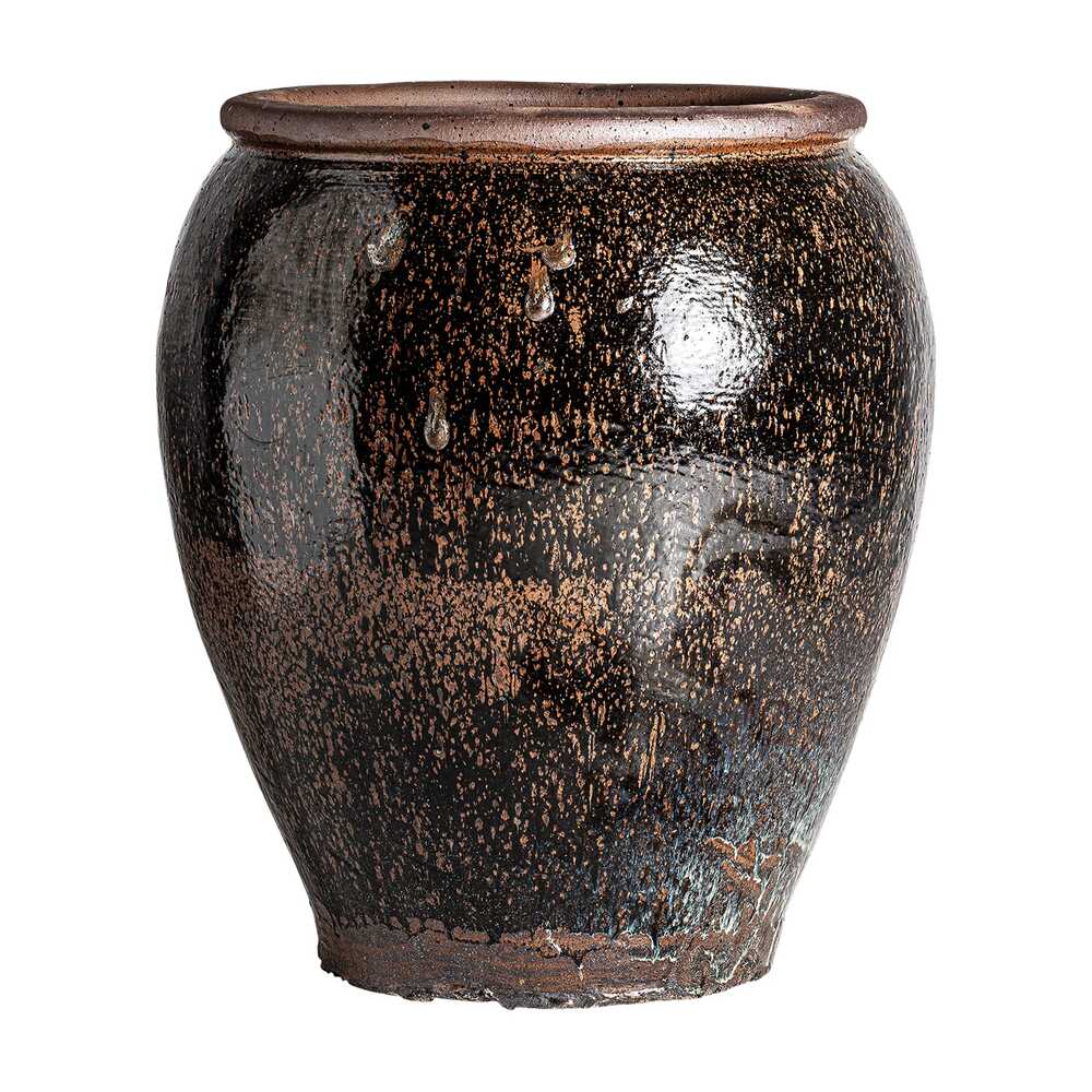 La tinaja Anquelina en cerámica marrón destaca por su acabado artesanal y formas suaves. Con la elegancia habitual de VICAL esta pieza transforma el espacio.