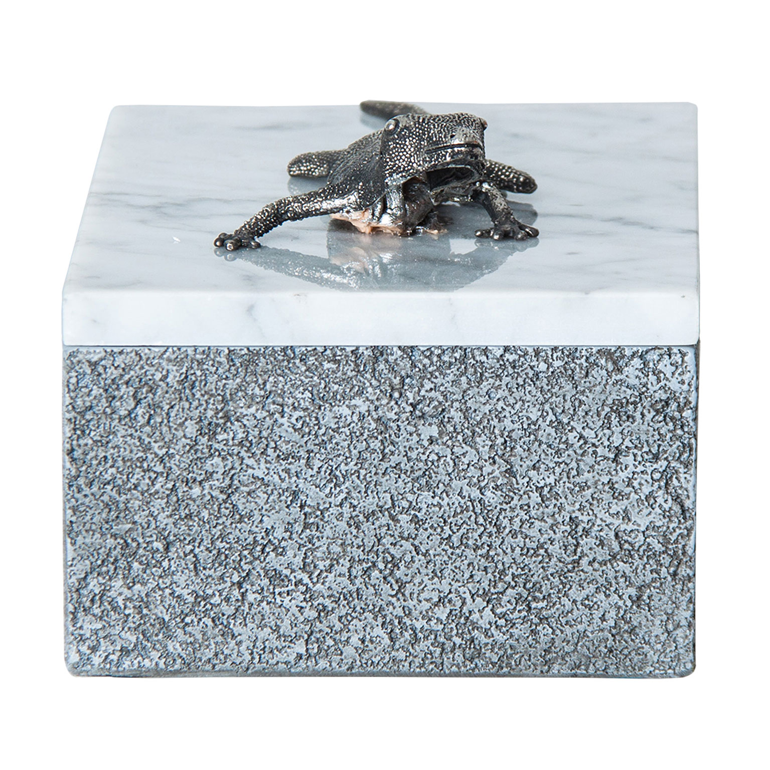 Caja Lagarto De Estilo Contemporáneo, Fabricado En Mármol En Color Blanco En Color Gris. Dimensiones: 19 x 12 x 10,50 cm