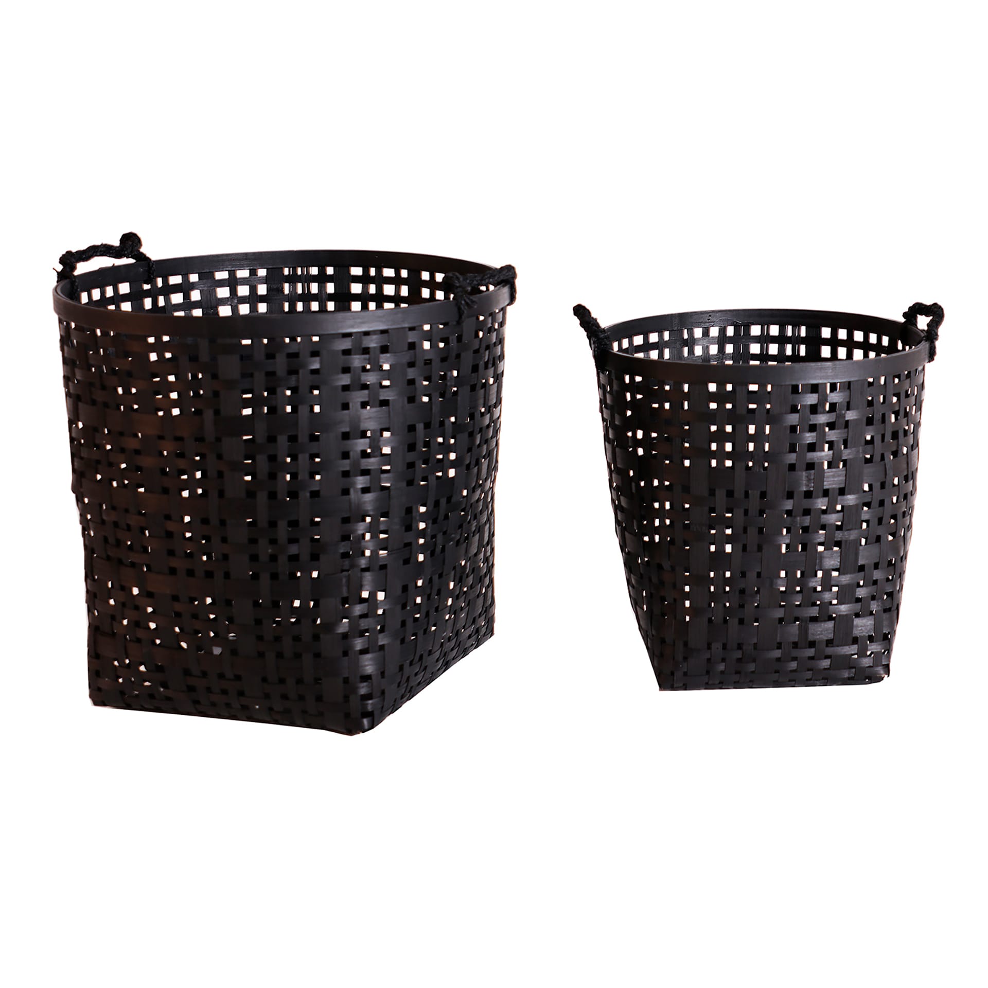 Cesto J/2 Kaleshe De Estilo Boho, Fabricado En Bambú En Color Negro. Dimensiones: 42 x 42 x 40 cm