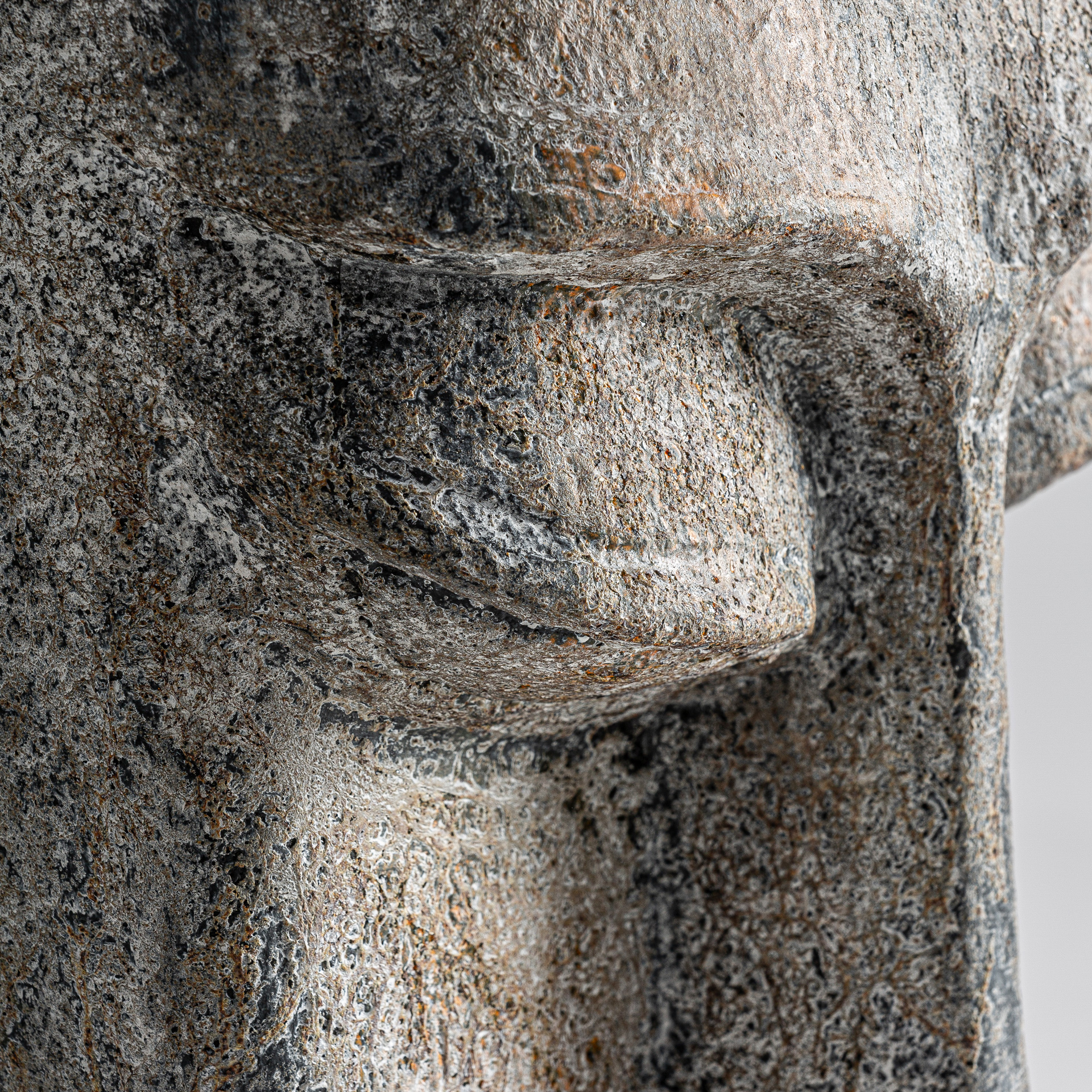 La escultura Khalid de VICAL evoca el misterio y la espiritualidad del arte oriental. Su rostro sereno tallado en cemento gris con acabado envejecido transmite una sensación de sabiduría ancestral. Una presencia silenciosa que transforma el espacio en un refugio de calma.