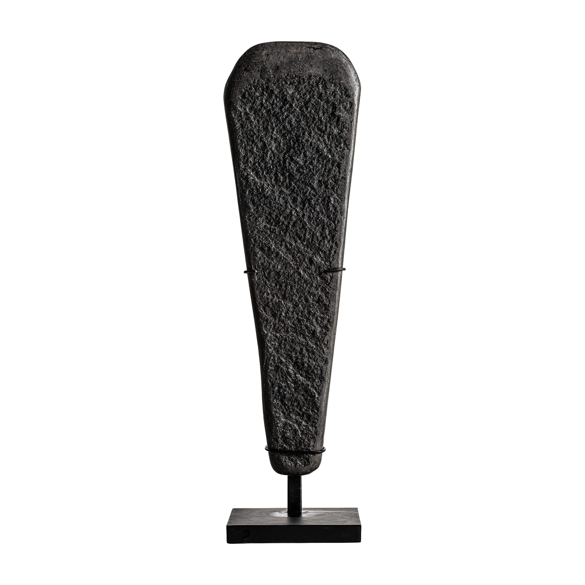 Escultura Stone De Estilo étnico, Fabricado En Piedra En Color Negro, Combinado Con Hierro En Color Negro. Producto Desmontable. Dimensiones: 20 x 17 x 67 cm