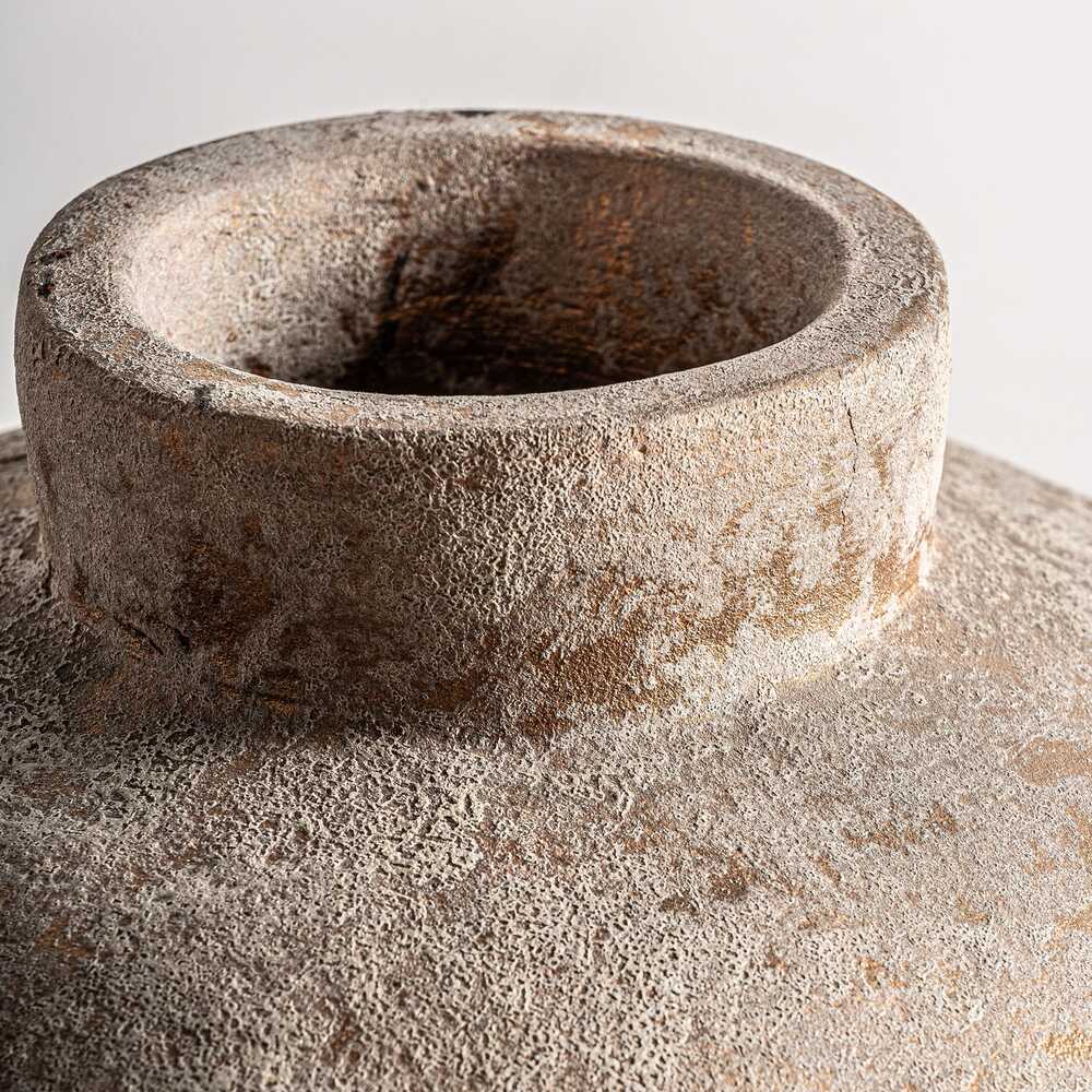 Jarrón Sehje De Estilo Vintage, Fabricado En Cerámica En Color Marrón Con Acabado Envejecido. Dimensiones: 27 x 27 x 28 cm