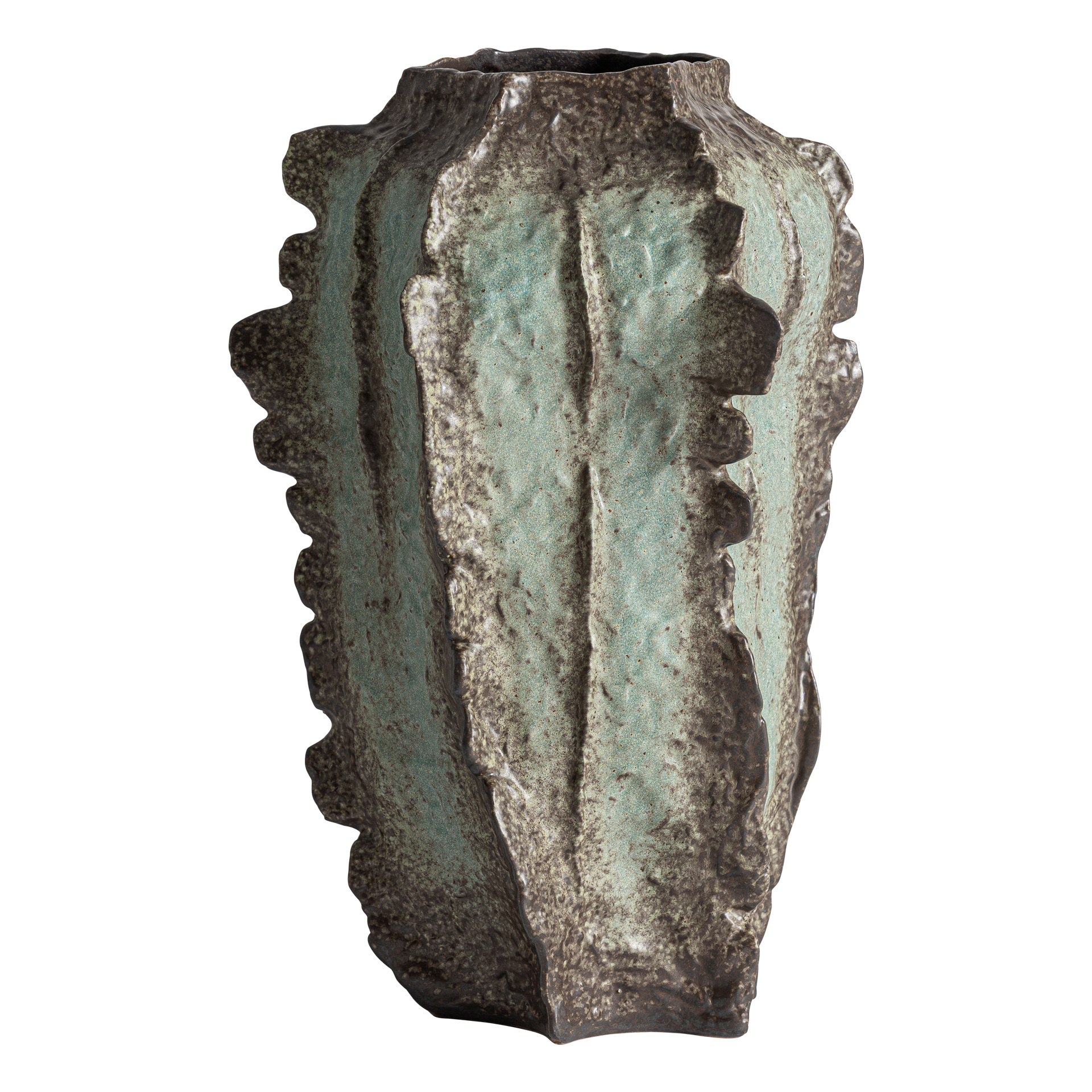 Jarrón Mikota De Estilo Contemporáneo, Fabricado En Cerámica En Color Verde. Dimensiones: 35 x 32 x 53 cm