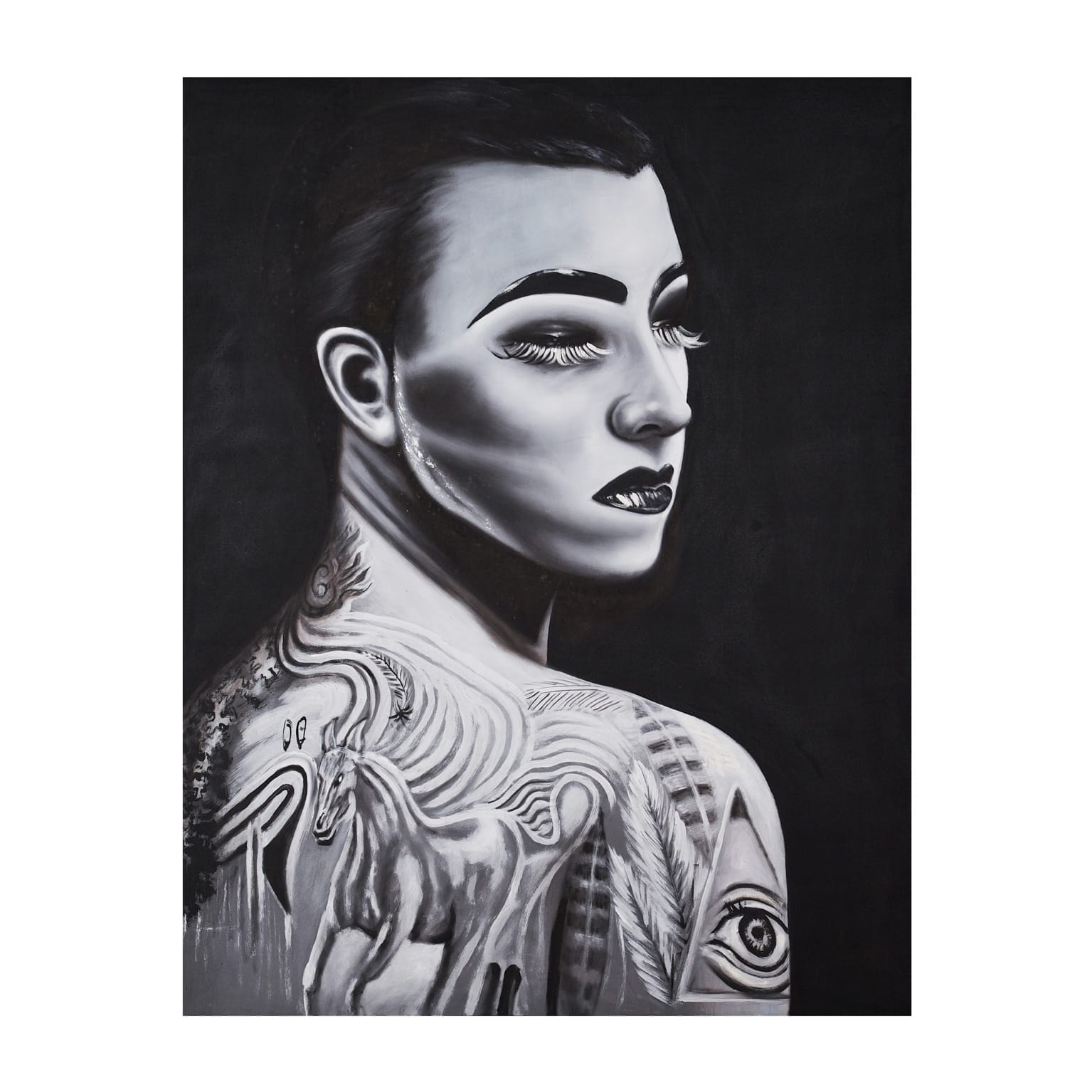 Lienzo Charlotte De Estilo Contemporáneo, Fabricado En Lienzo En Color Blanco Con Acabado Artesanal En Color Negro. Dimensiones: 140 x 4 x 180 cm