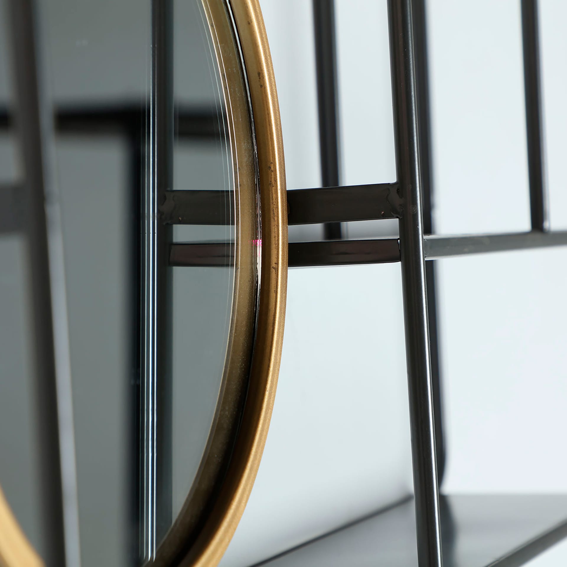 Espejo Rectangular Varese De Estilo Industrial, Fabricado En Hierro En Color Gris, Combinado Con Espejo En Color Oro Y Madera Dm. Dimensiones: 74 x 12 x 35 cm
