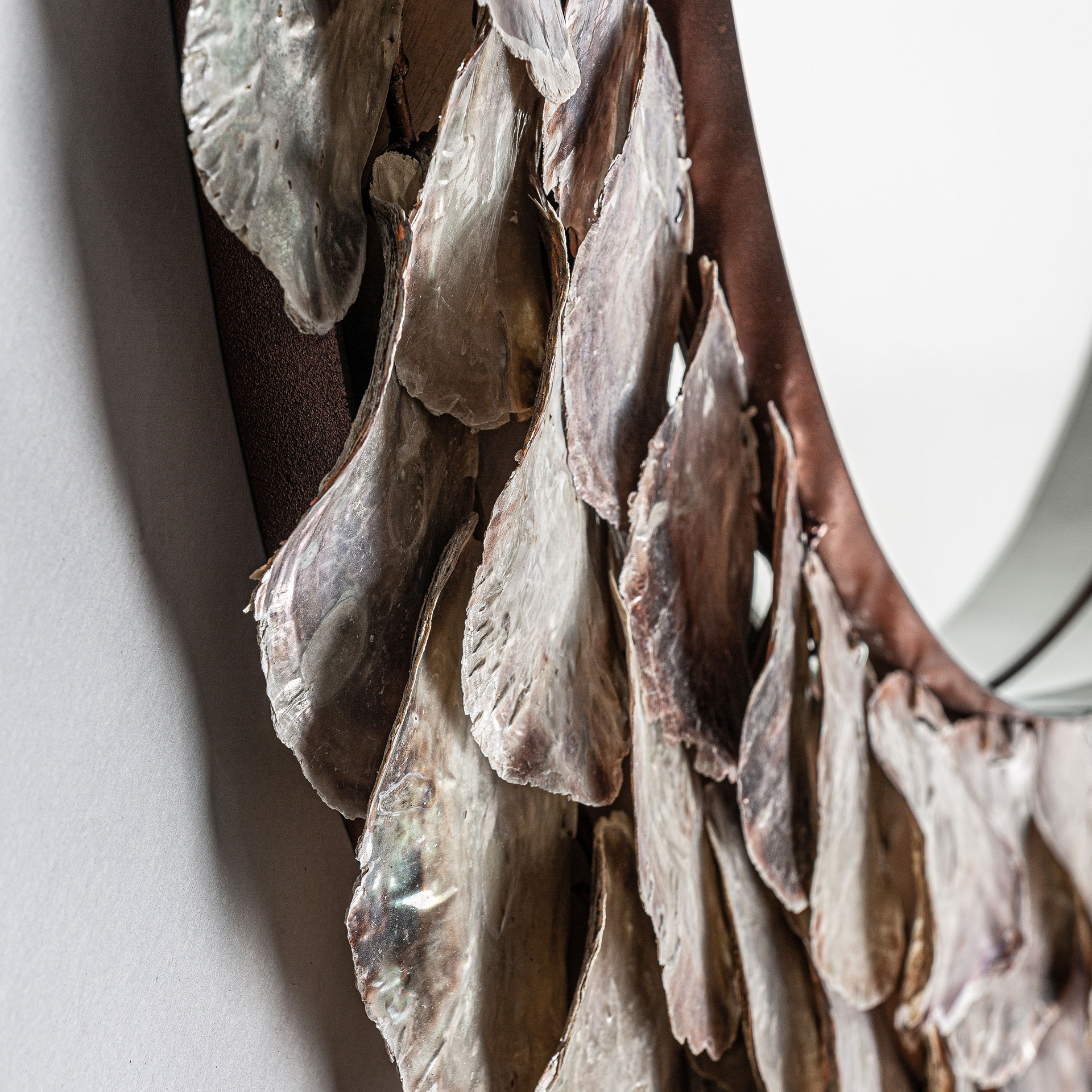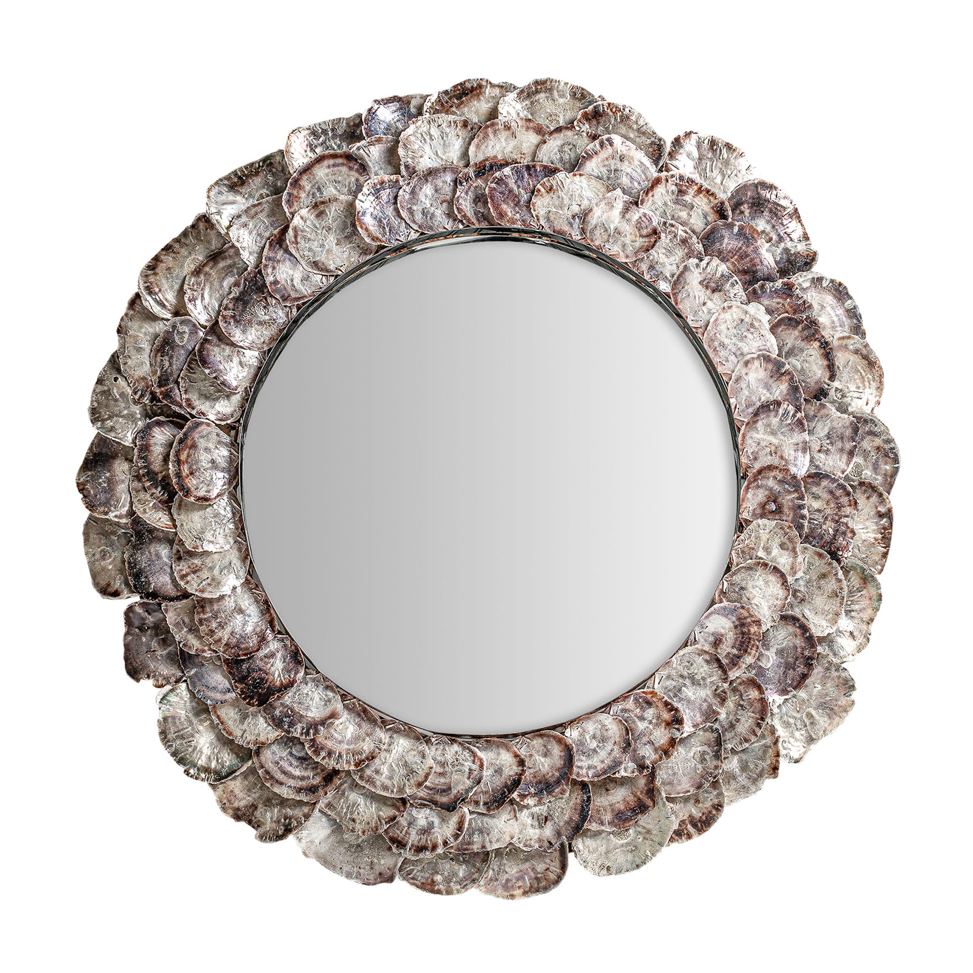 Espejo Inga De Estilo Nórdico, Fabricado En Acero En Color Marfil, Combinado Con Concha Y Espejo. Concha De Ostra. Dimensiones: 128 x 11 x 128 cm