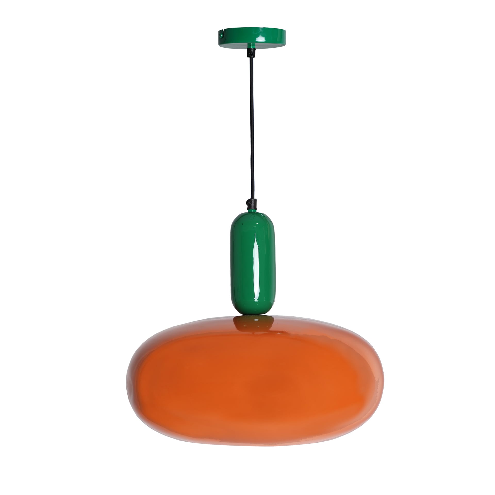 Lámpara De Colgar Falhia De Estilo Contemporáneo, Fabricado En Hierro En Color Naranja Con Acabado Brillo, Combinado Con Hierro En Color Verde Con Acabado Brillo. Dimensiones: 38 x 38 x 39 cm