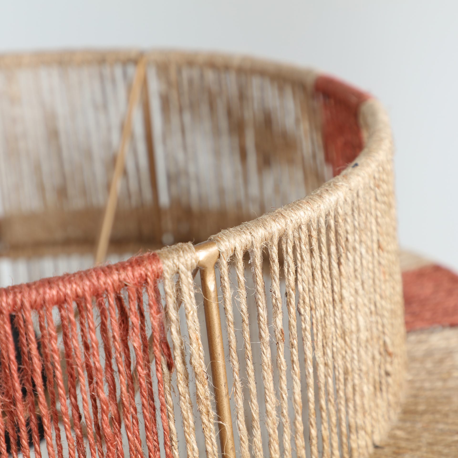 Lámpara De Colgar Izamal De Estilo Boho, Fabricado En Yute En Color Marrón Claro, Combinado Con Hierro En Color Marrón En Color Rojo. Dimensiones: 40 x 40 x 38 cm
