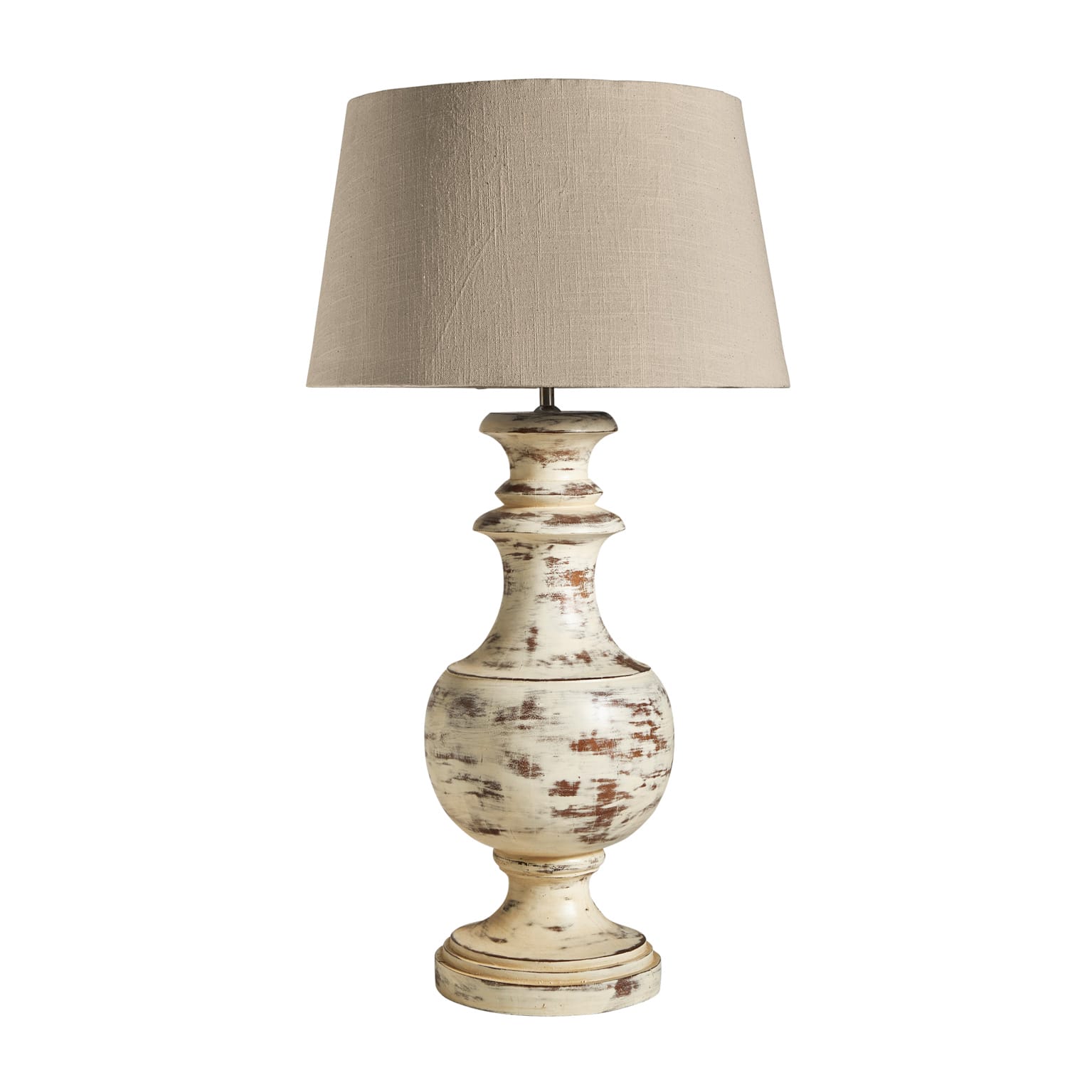 Lámpara De Sobremesa Uznaj De Estilo Provenzal, Fabricado En Madera De Mango En Color Blanco Con Acabado Decapado, Combinado Con Algodón. Dimensiones: 50 x 50 x 80 cm