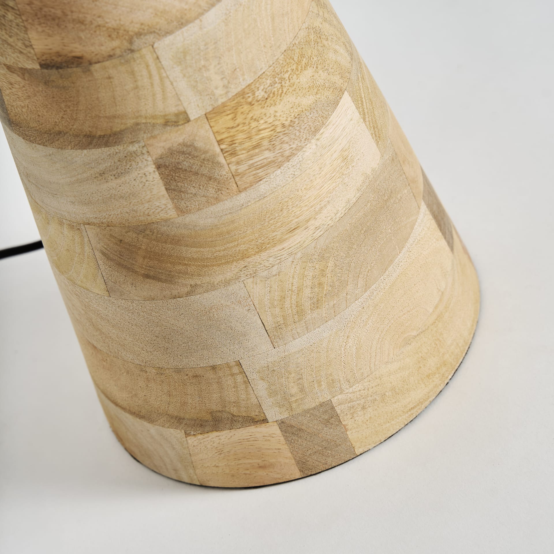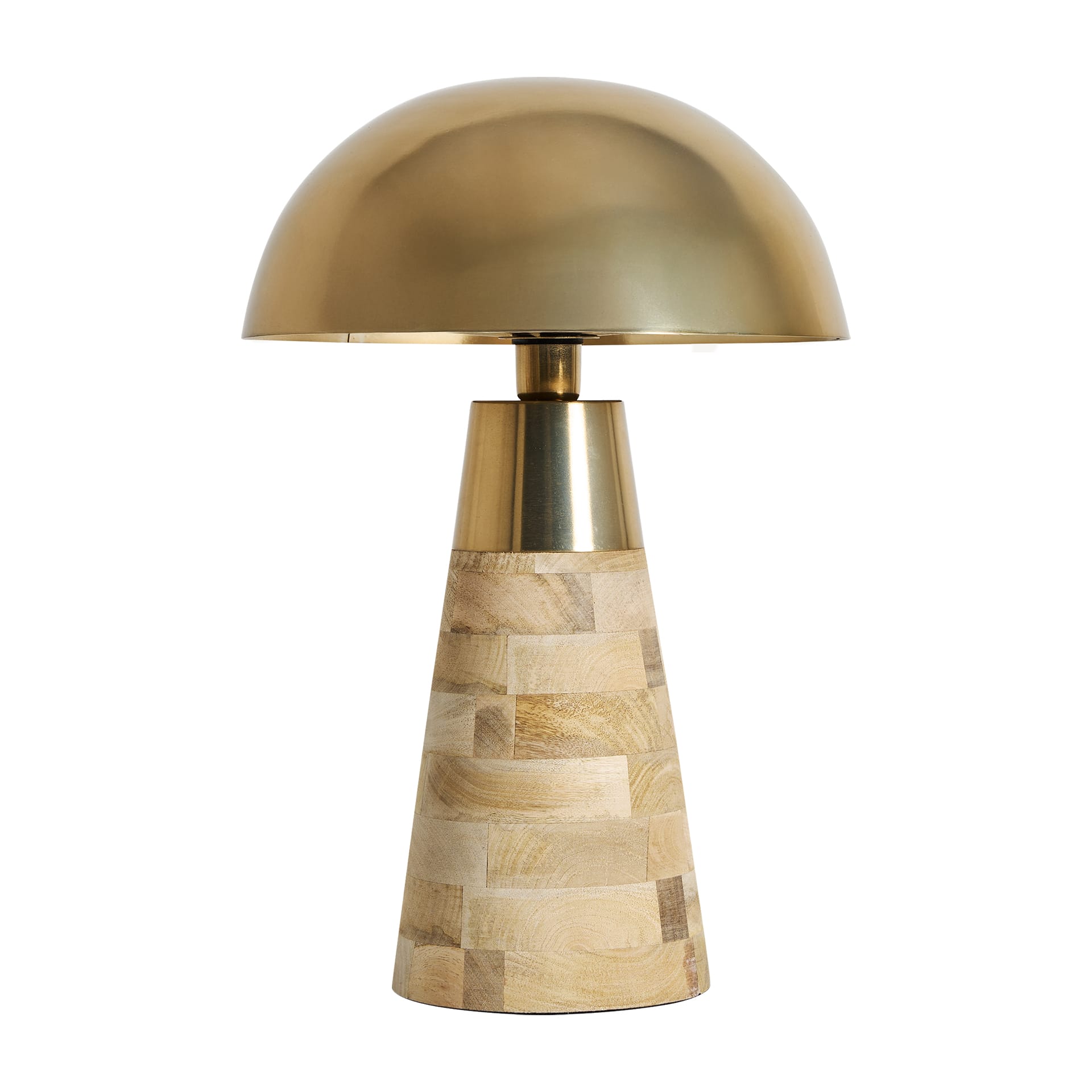 Lámpara De Sobremesa Kelly, En Color Crema Oro, De Estilo Art Deco. Fabricado En Latón, Combinado Con Madera De Mango. Producto Desmontable. Dimensiones: 39 x 39 x 58 cm