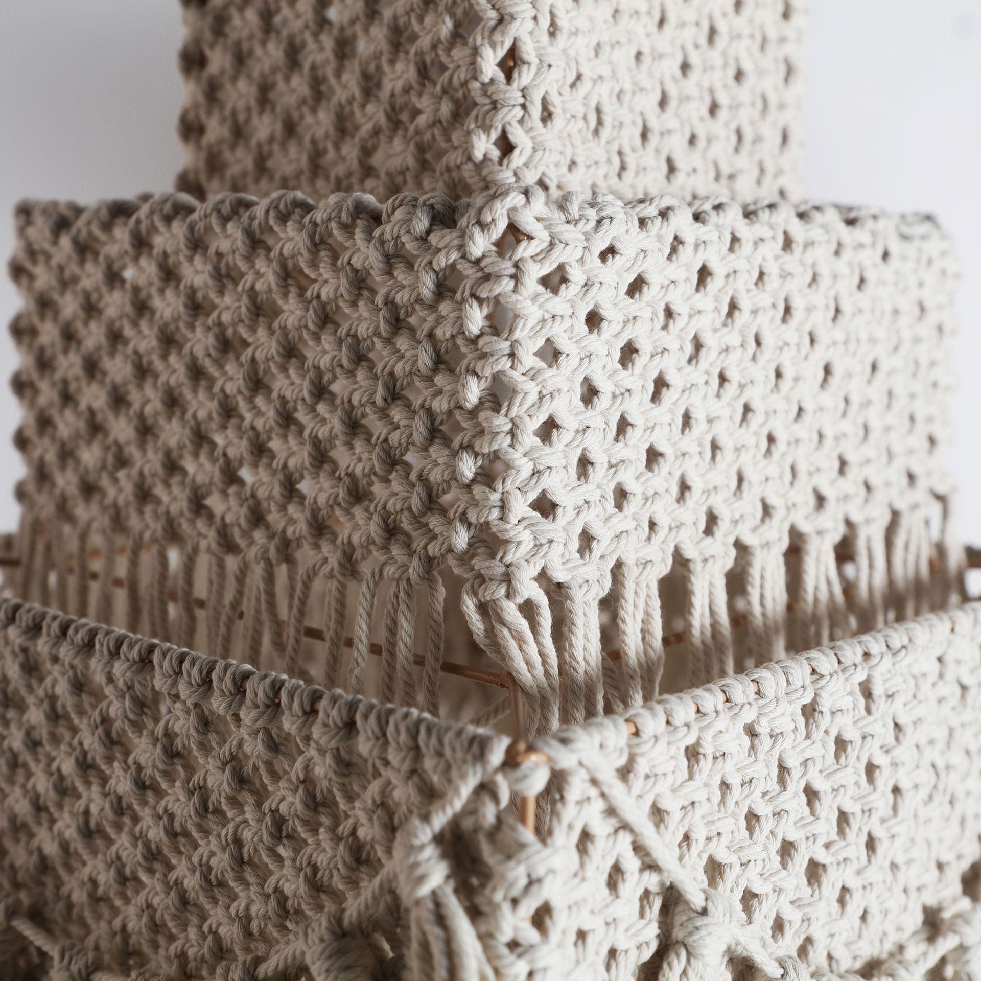 Lámpara De Colgar Rectangular Alayor De Estilo Boho, Fabricado En Algodón En Color Blanco Roto, Combinado Con Hierro. Dimensiones: 34 x 34 x 41 cm