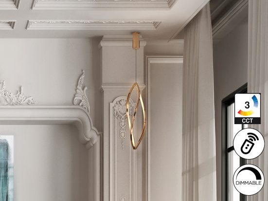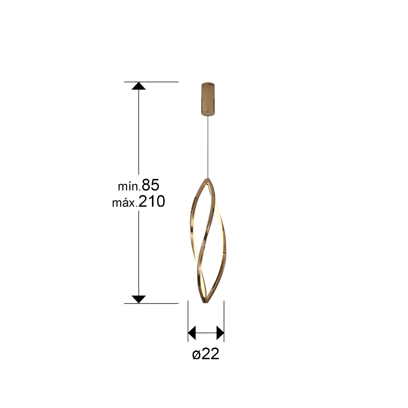 Lámpara con luz LED, DIMADO y cambio de color CCT. Realizada en acero acabado oro rosa brillo. Difusor acrílico opal. Regulable en altura. Iluminación LED 35W, 2700-6500 K. Incluye mando a distancia.