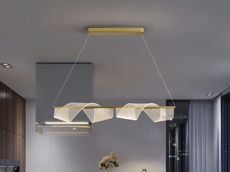 Lámpara realizada en metal y aluminio, acabado oro mate. Difusor de metacrilato microimpreso curvado. Altura regulable. 21W LED, 1.200 lm, 3.000K.