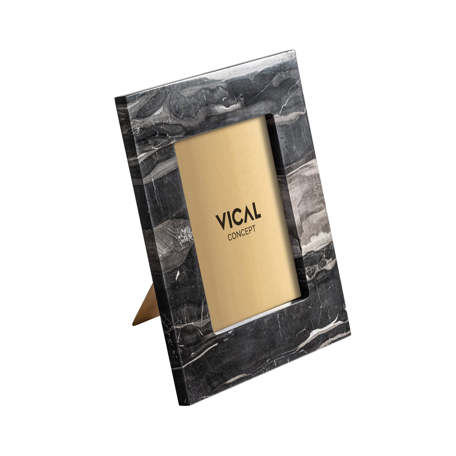 El marco de foto en bronce negro con mármol y acrílico destaca por su diseño art déco y su elegancia estructural. Una propuesta de VICAL que enmarca recuerdos con estilo.