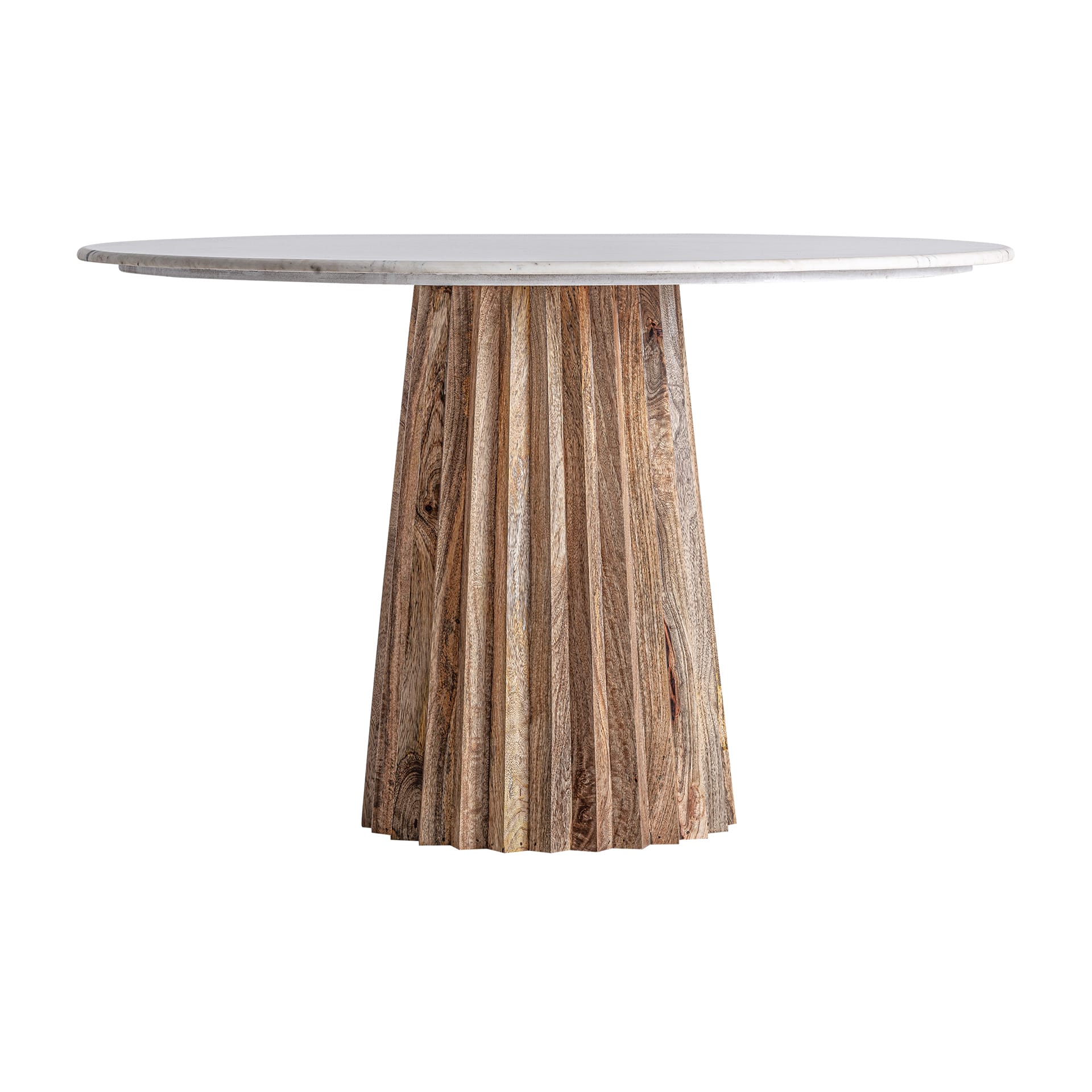 Mesa Comedor Plissé Wood De Estilo Contemporáneo, Fabricado En Madera De Mango En Color Marrón Claro, Combinado Con Mármol En Color Blanco Con Acabado Veteado. Limpiar Rápidamente La Superfície Del Mármol Si Se Mancha Para Evitar Marcas. Producto Desmontable. Dimensiones: 121 x 121 x 76 cm