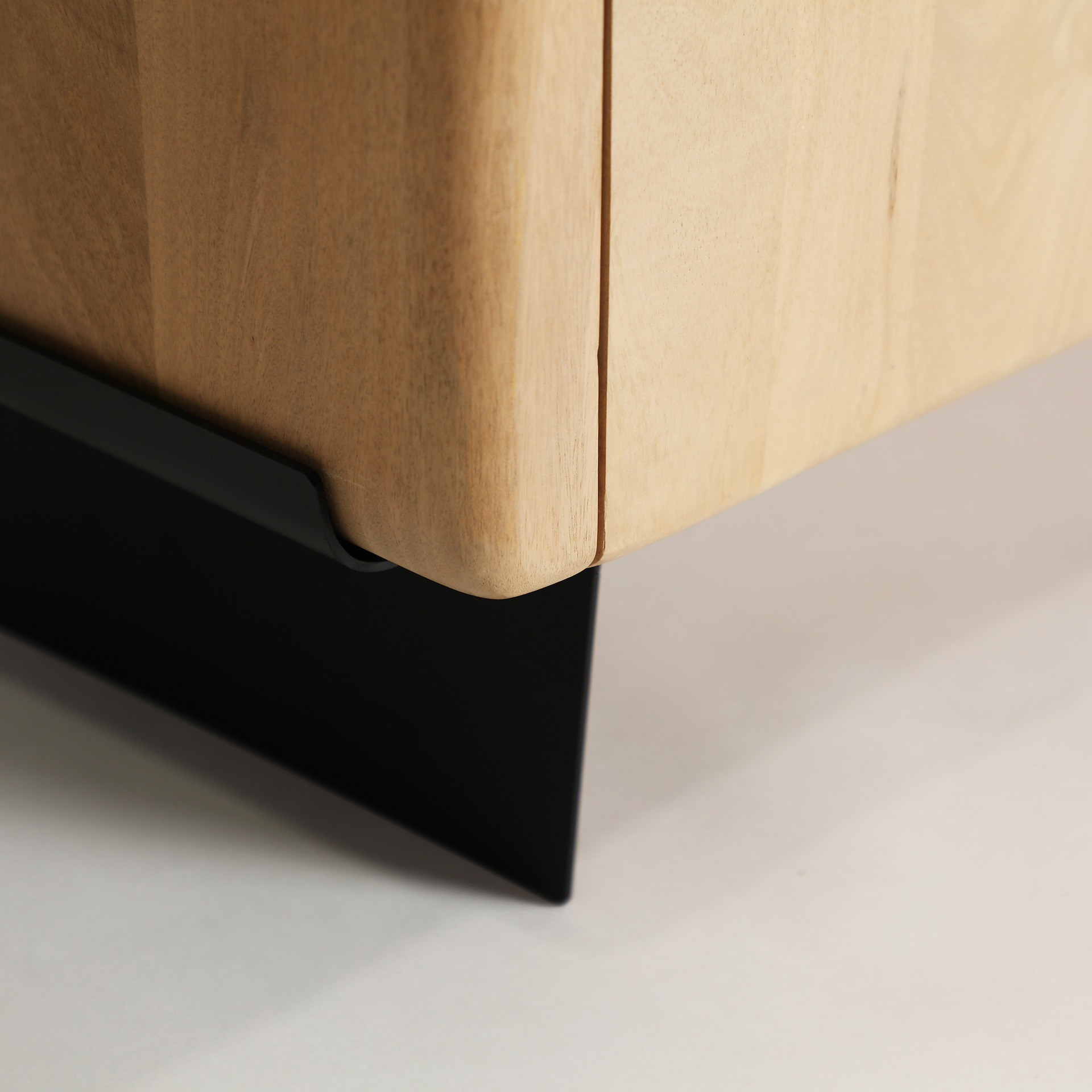 Aparador Alassio De Estilo Nórdico, Fabricado En Madera De Mango En Color Marrón Claro, Combinado Con Hierro En Color Negro Y Madera Dm En Color Marrón Claro. Dimensiones: 175 x 45 x 75 cm