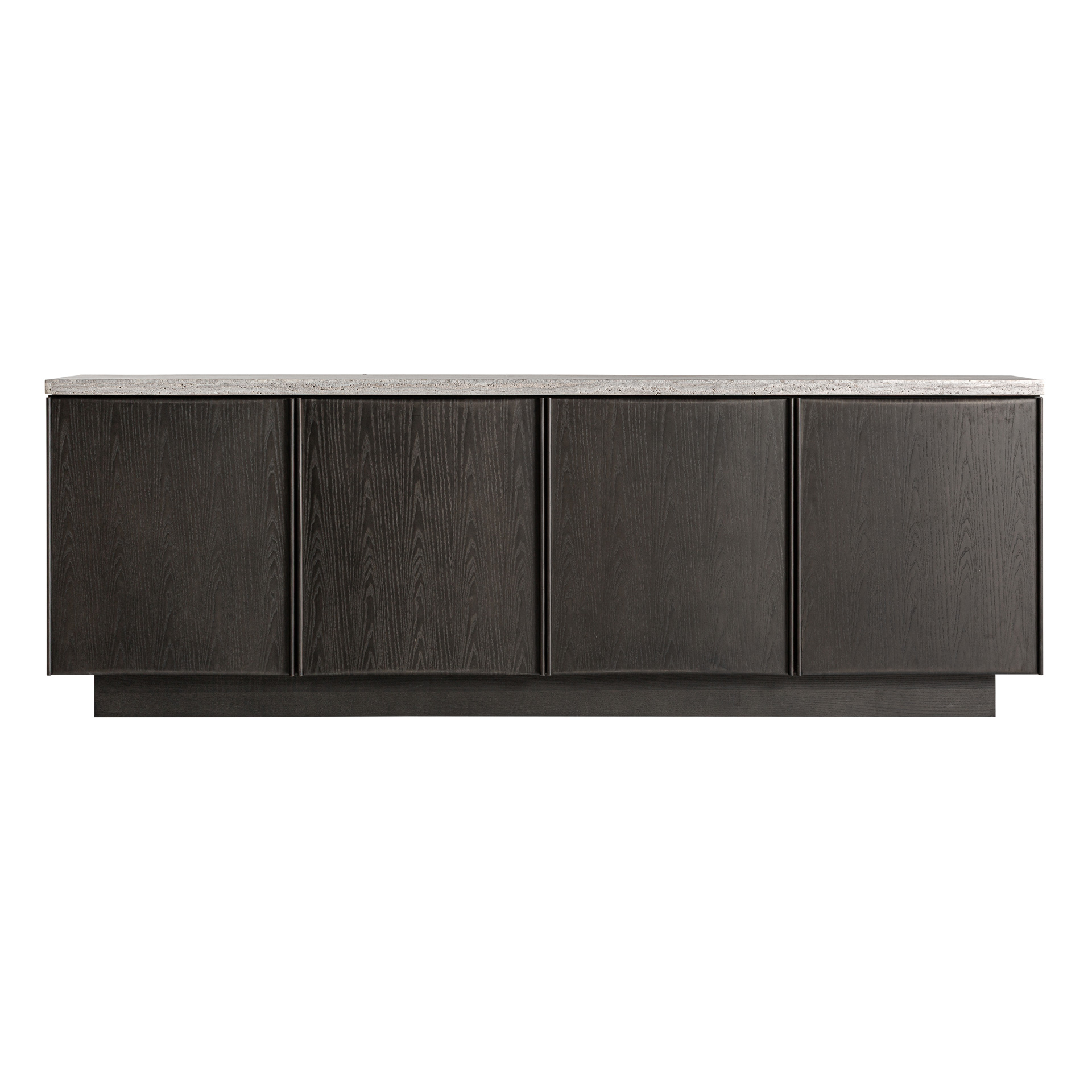 Aparador Rignac De Estilo Contemporáneo, Fabricado En Travertino En Color Gris, Combinado Con Madera De Fresno En Color Marrón. Dimensiones: 221 x 45 x 76 cm