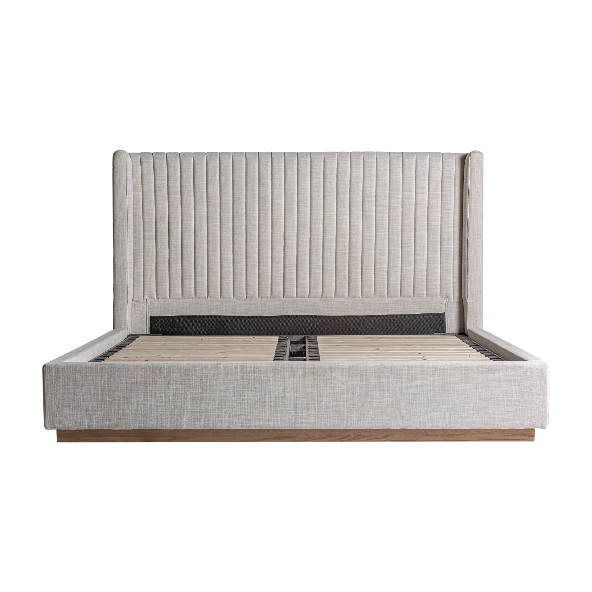 Cama Aunac De Estilo Art Deco, Fabricado En Poliéster En Color Gris, Combinado Con Madera De Pino En Color Marrón Claro Y Espuma. Producto Desmontable. Dimensiones: 200 x 220 x 125 cm