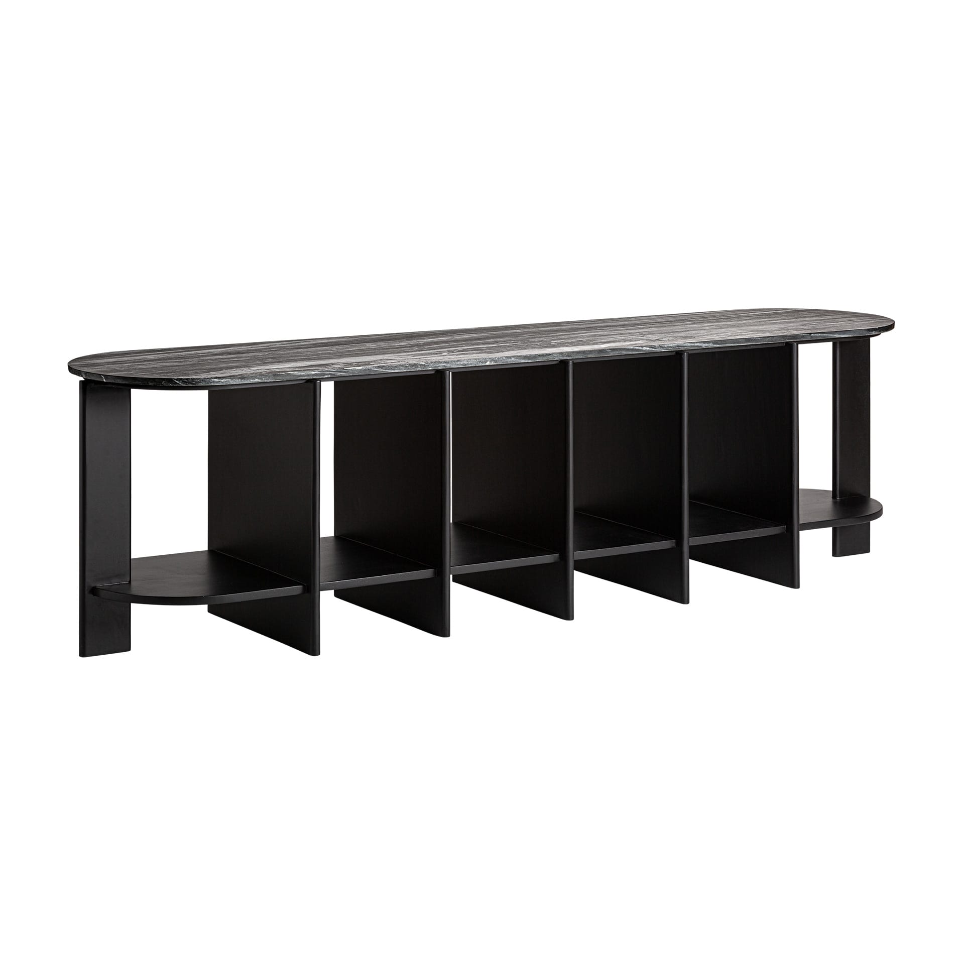 Estanteria Nara De Estilo Contemporáneo, Fabricado En Madera De Mango En Color Negro, Combinado Con Mármol En Color Negro. Dimensiones: 240 x 54 x 66 cm
