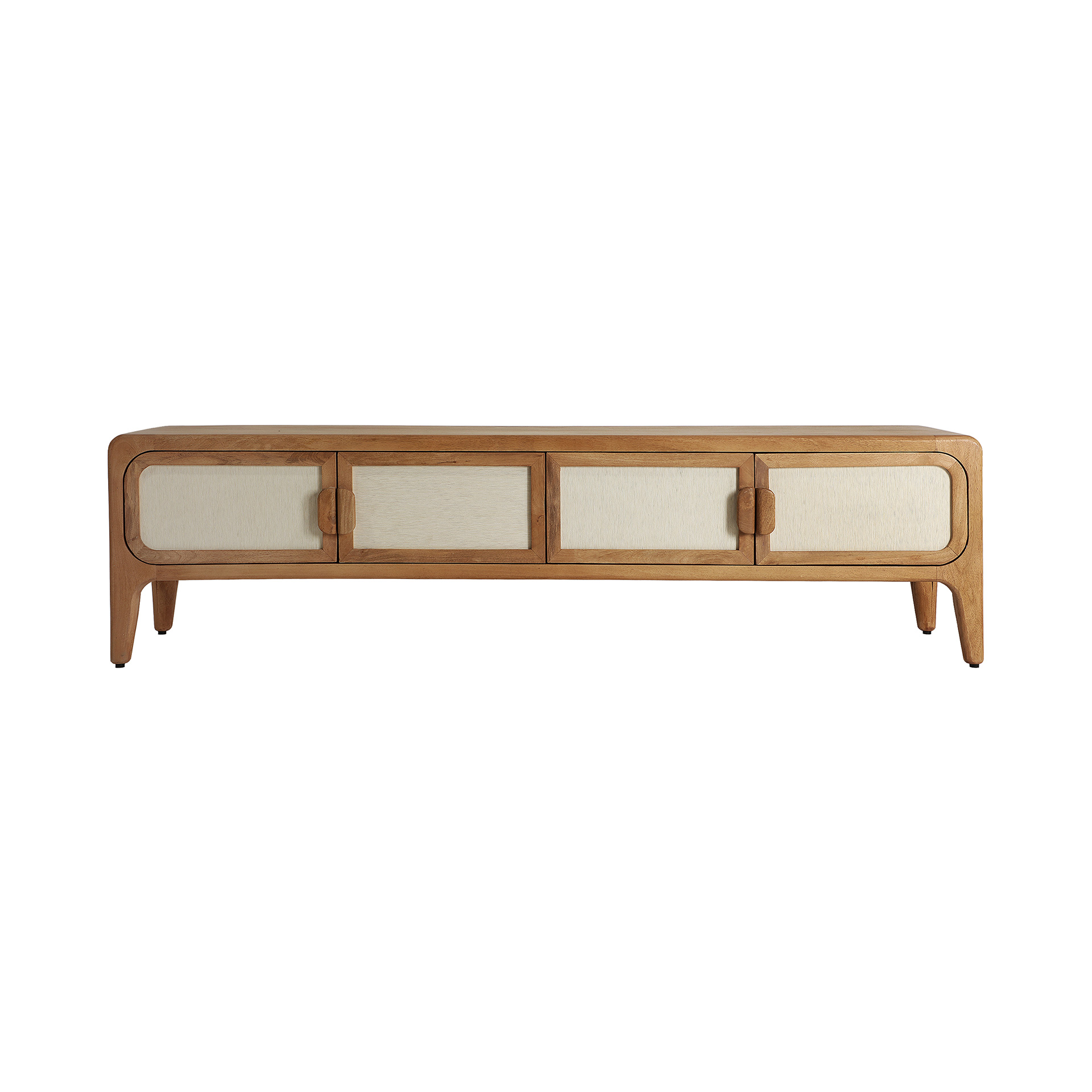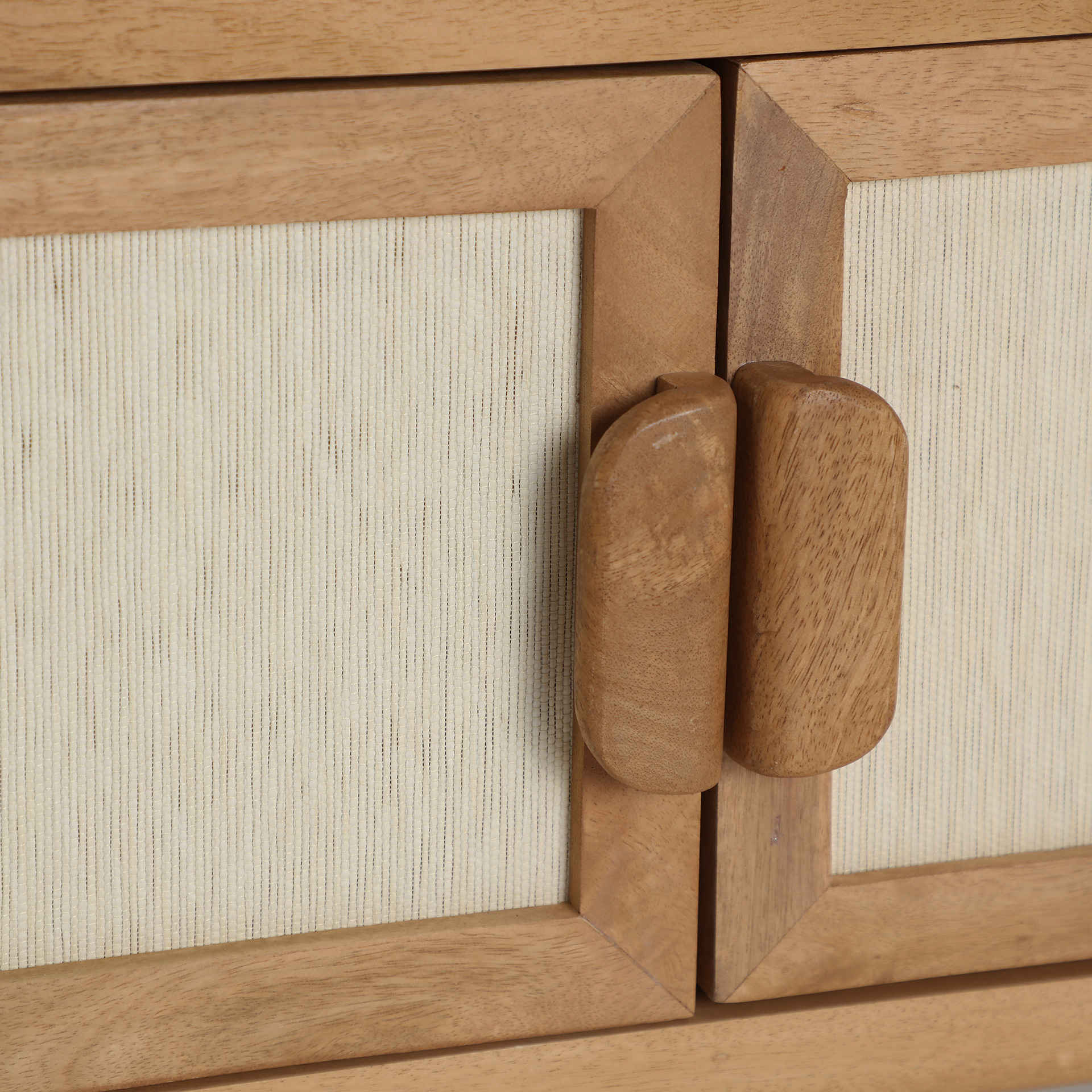 Mueble Tv Lattes De Estilo Nórdico, Fabricado En Madera De Mango En Color Marrón, Combinado Con Bambú En Color Beige Y Madera Dm En Color Marrón. Dimensiones: 190 x 40 x 51 cm