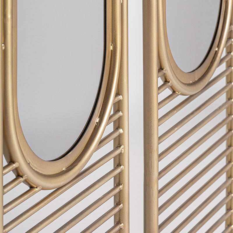 Parabán Alleghe, De Estilo Art Deco. Fabricado En Acero, En Color Oro, Combinado Con Cristal. Producto Desmontable. Dimensiones: 95 x 30 x 220 cm