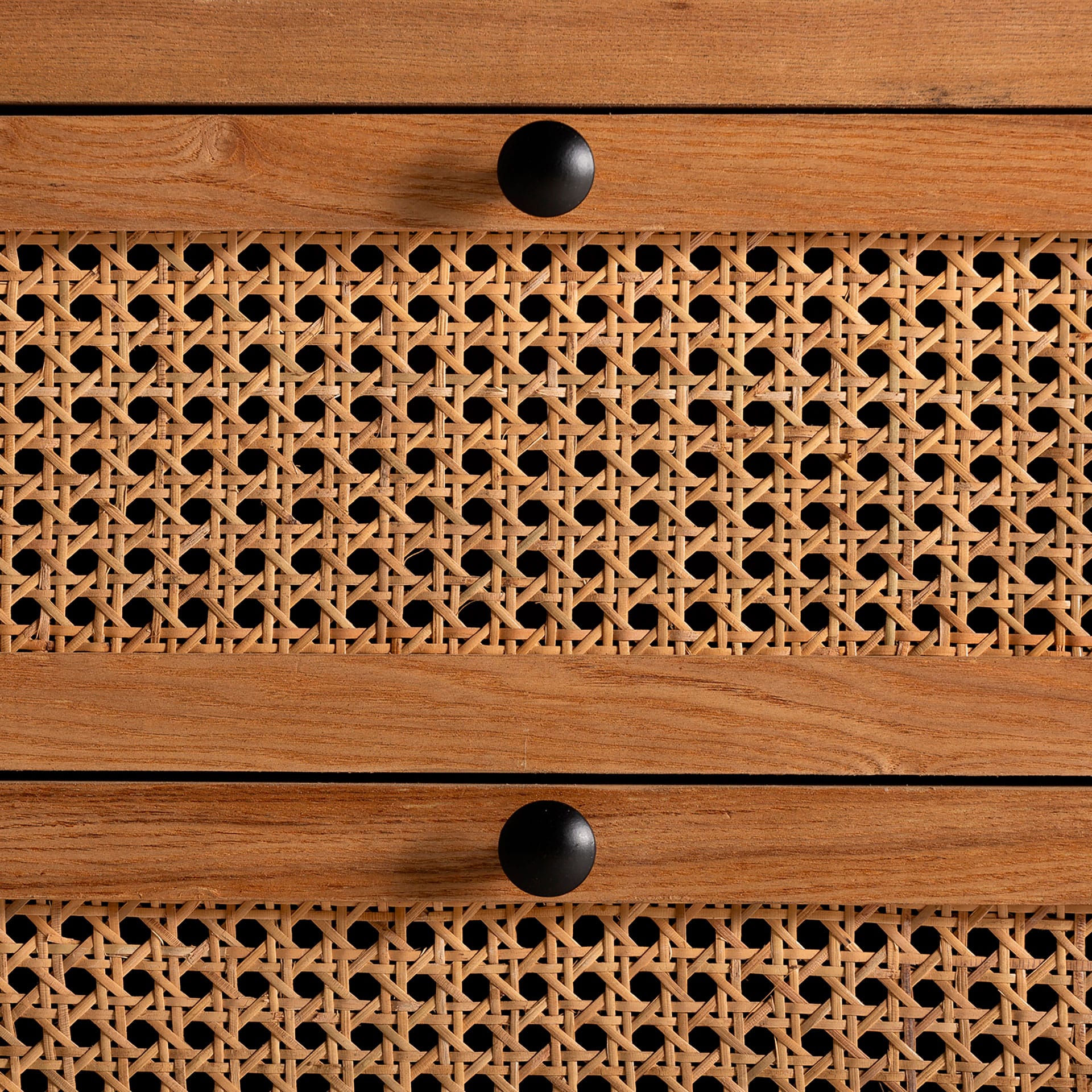 Sinfonier Rectangular Zetel De Estilo Contemporáneo, Fabricado En Madera Dm En Color Negro, Combinado Con Ratán En Color Marrón Claro Y Hierro. Producto Desmontable. Dimensiones: 45 x 40 x 115 cm