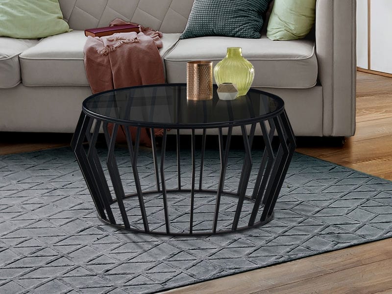 La mesa de centro Ciros destaca por su diseño geométrico y su estética contemporánea, convirtiéndose en un elemento con personalidad propia dentro del salón. Su estructura metálica en acabado negro mate crea un juego de líneas verticales que aportan dinamismo visual y ligereza al conjunto.