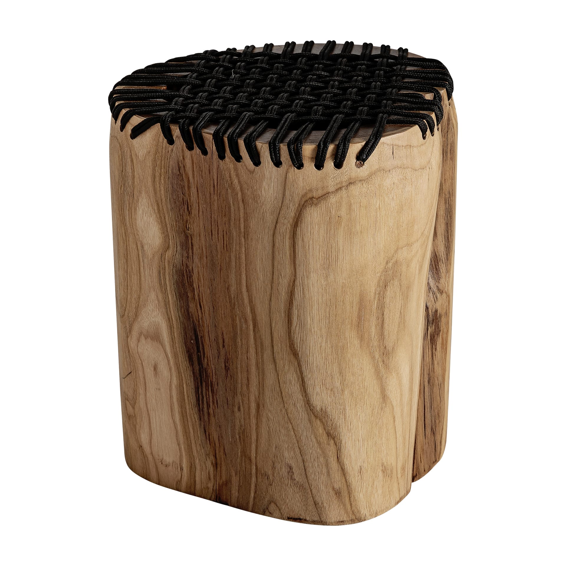 Fabricada en madera de suar, muestra vetas fluidas y cambios de tono naturales que hacen que cada unidad sea distinta. El acabado mantiene la esencia orgánica de la madera, con matices y marcas propias del material, mientras el trenzado en negro crea un contraste elegante y contemporáneo. Ideal para colocar una bandeja, un libro o una lámpara ligera sin recargar el espacio.