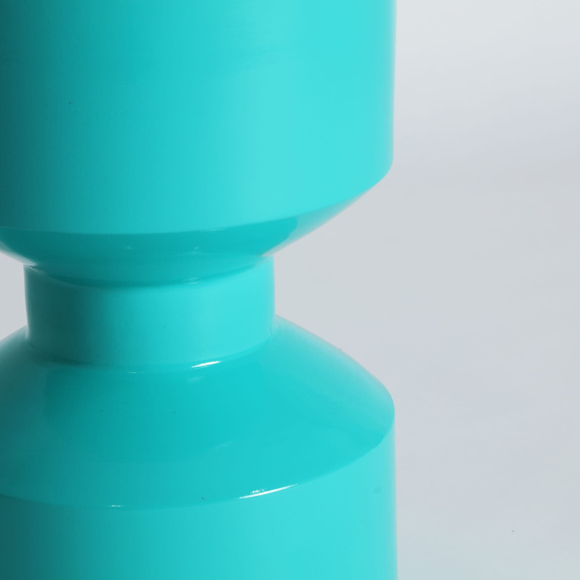 La Mesa Auxiliar Pop Turquesa Hierro es una pieza compacta y divertida, pensada para dar un toque de color y diseño sin complicaciones. Su silueta tipo tótem, con volúmenes geométricos suaves y un acabado brillante, crea un acento moderno que funciona genial en salones contemporáneos, dormitorios juveniles o rincones creativos.