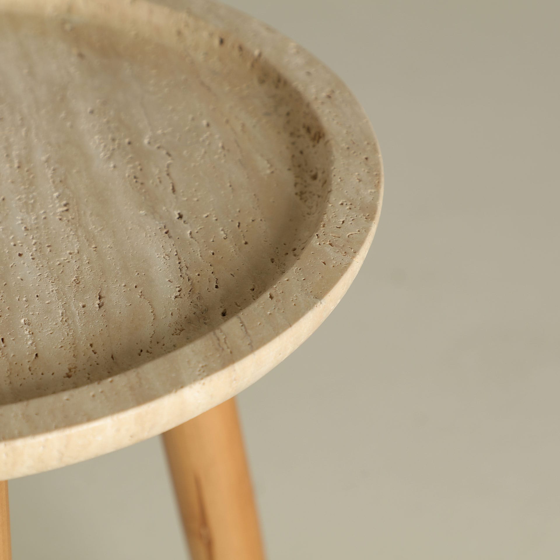 Mesa Auxiliar Redonda Videix De Estilo Art Deco, Fabricado En Madera Abedul En Color Marrón, Combinado Con Mármol En Color Beige. Producto Desmontable. Dimensiones: 43 x 43 x 58 cm
