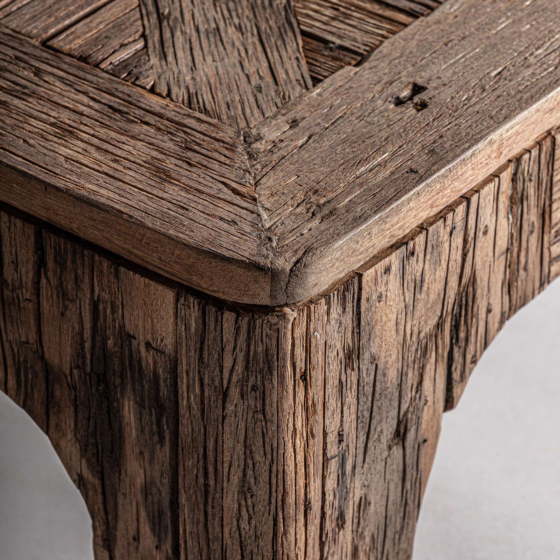 Mesa De Centro Samsun De Estilo Colonial, Fabricado En Madera Recuperada En Color Marrón. Dimensiones: 80 x 80 x 30 cm
