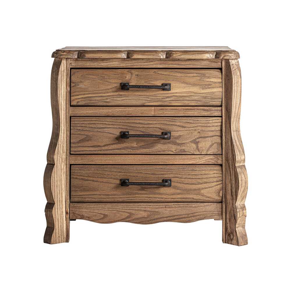 Mesita de Noche Brixton: madera de olmo con tres cajones y aire clásico