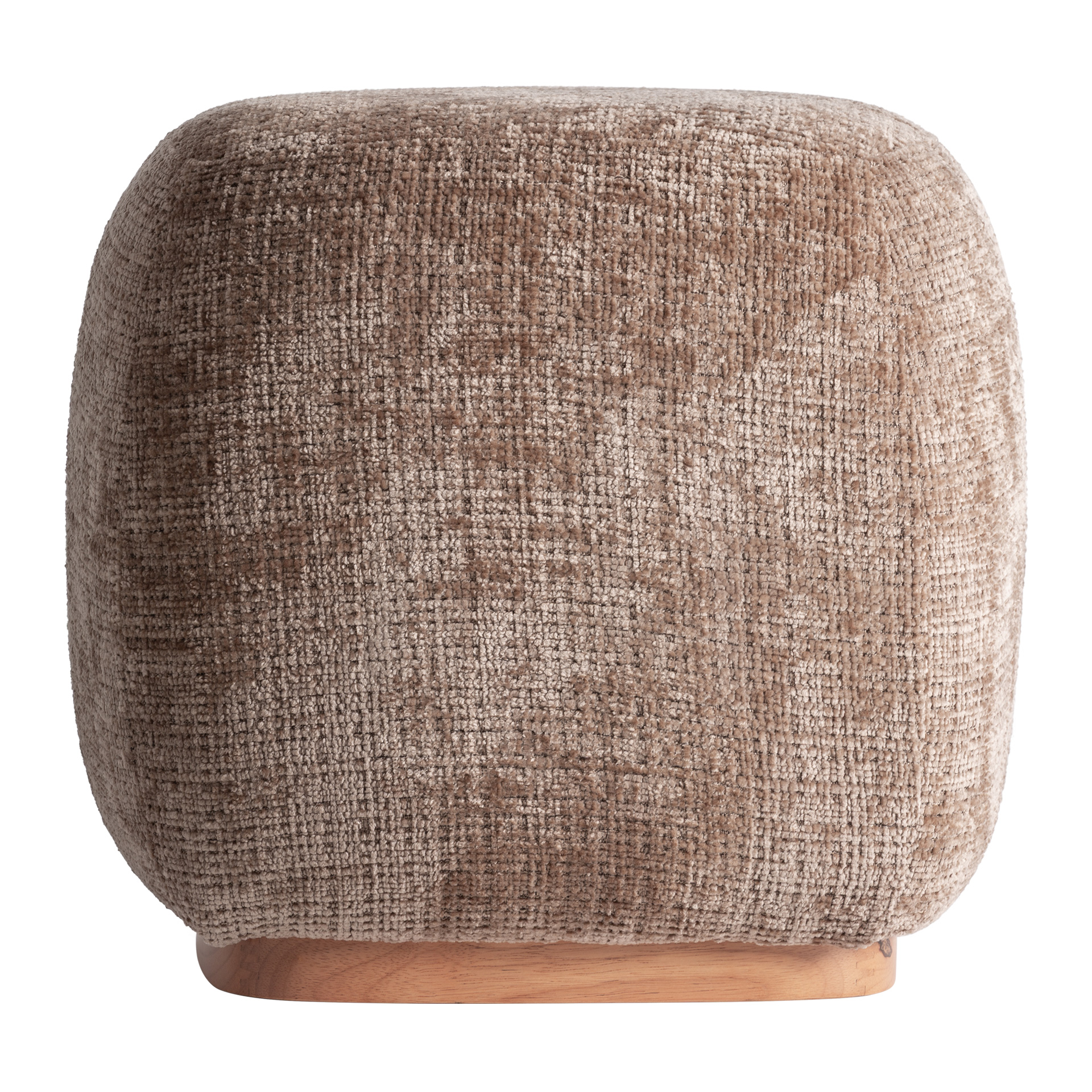 Reposapiés Calypso De Estilo Contemporáneo, Fabricado En Poliéster En Color Topo, Combinado Con Madera Contrachapada En Color Marrón Claro Con Acabado Natural Y Espuma. Dimensiones: 43 x 43 x 43 cm