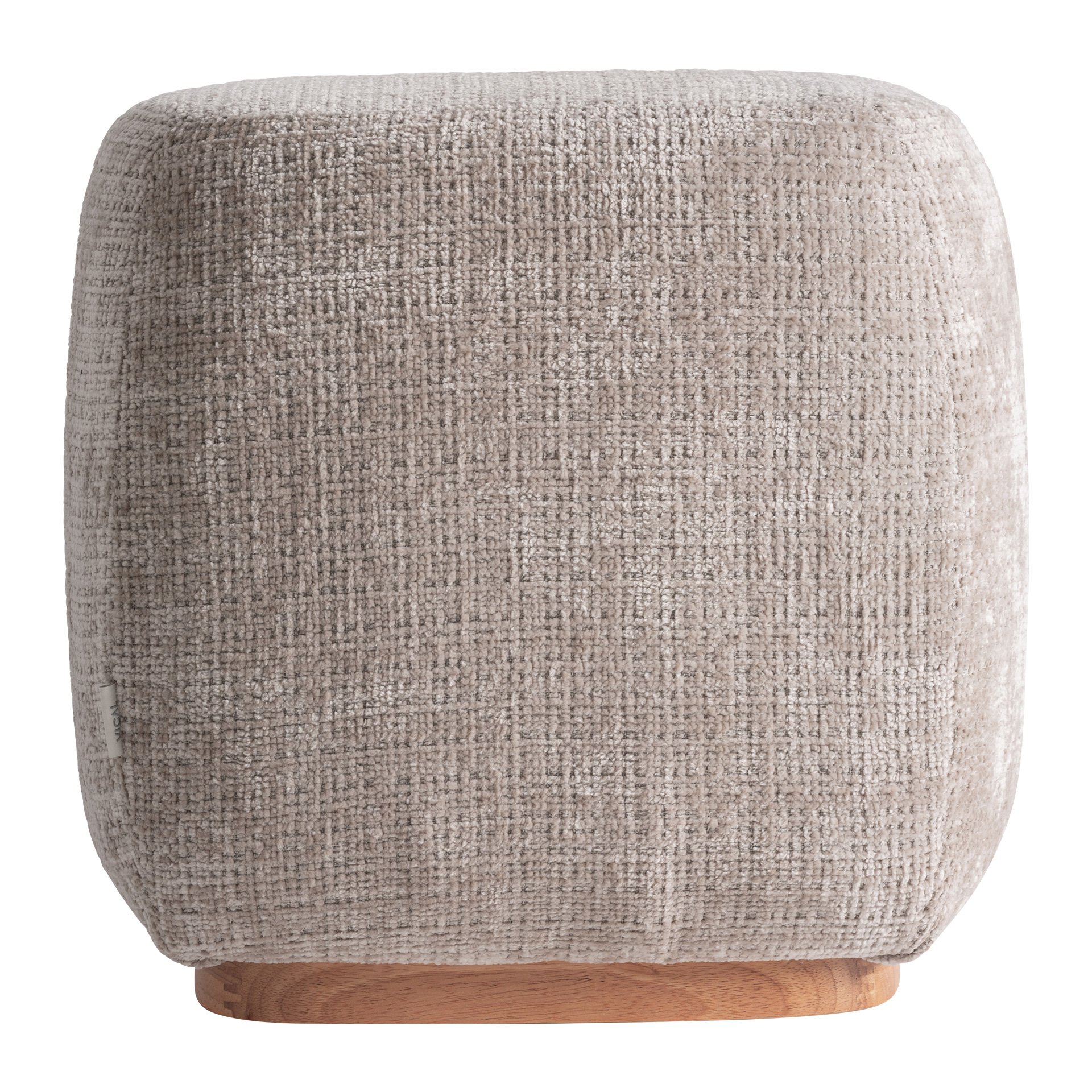 Reposapiés Luli De Estilo Contemporáneo, Fabricado En Poliéster En Color Arena, Combinado Con Madera Contrachapada En Color Marrón Claro Con Acabado Natural Y Espuma. Dimensiones: 43 x 43 x 43 cm