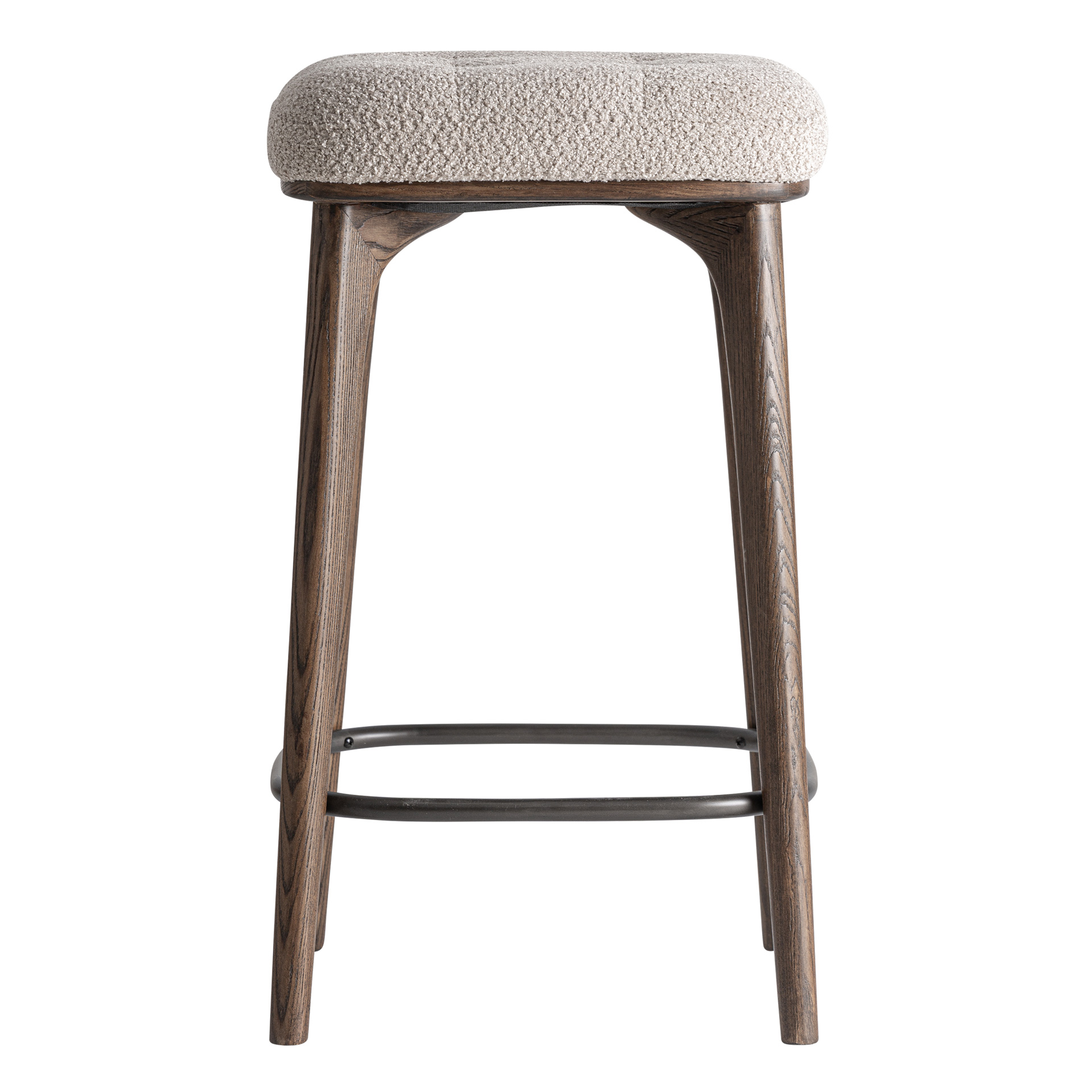 Taburete Zemst De Estilo Clásico, Fabricado En Poliéster En Color Beige, Combinado Con Madera De Fresno En Color Marrón Y Hierro En Color Negro. Dimensiones: 38 x 38 x 65 cm