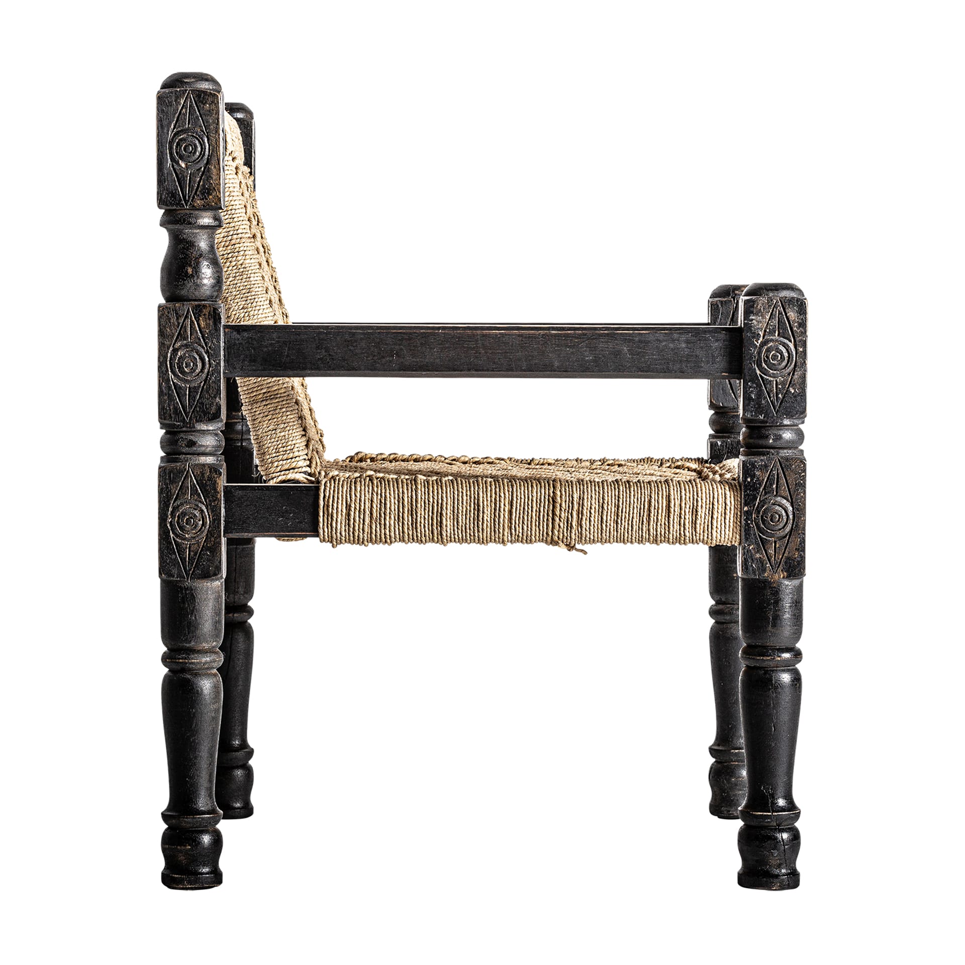 Sillón Backlyn De Estilo Nórdico, Fabricado En Madera Recuperada En Color Negra, Combinado Con Cuerda En Color Marrón. Dimensiones: 57 x 6150 x 76 cm