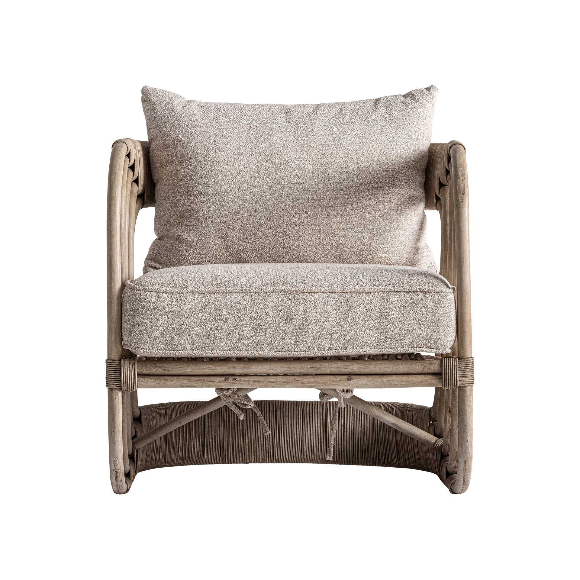 Sillón, Fabricado En Poliéster En Color Beige, Combinado Con Ratán En Color Marrón Y Espuma. Dimensiones: 66 x 70 x 76 cm