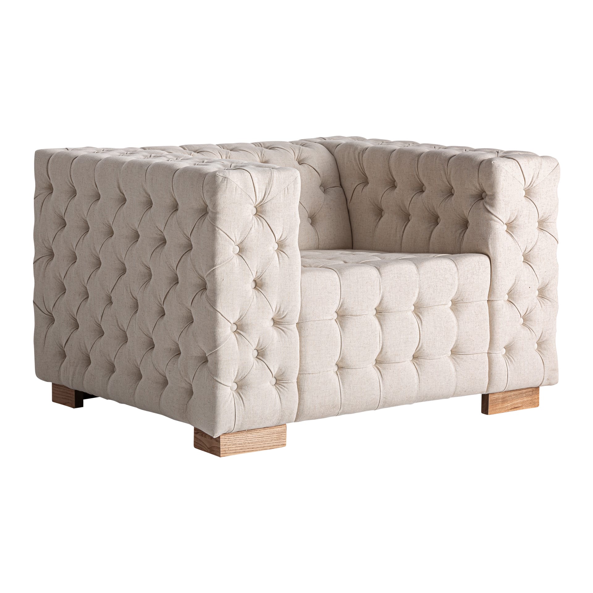 Sillón Genhof De Estilo Clásico, Fabricado En Madera De Fresno En Color Marrón Claro, Combinado Con Poliéster En Color Beige. Producto Desmontable. Dimensiones: 118 x 92 x 72 cm