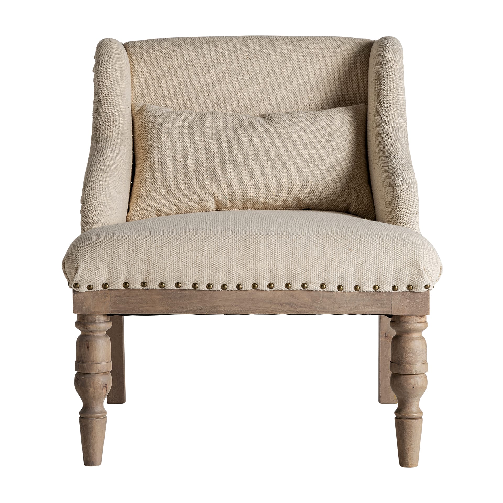 Sillón Objat De Estilo Colonial, Fabricado En Madera De Mango En Color Marrón, Combinado Con Poliéster En Color Beige. Dimensiones: 64 x 69 x 75 cm